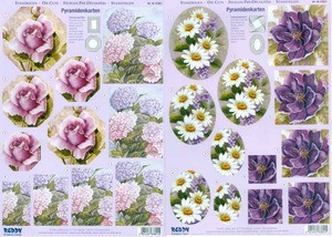 Step by step, pre-numbered and pre-cut 3-D pyramid designs. There are two different sheets per package with two separate images on each. Each image has a unique shape and are layered or twisted slightly when put together. Use foam pads or silicone glue between layers to build the 3-D effect.